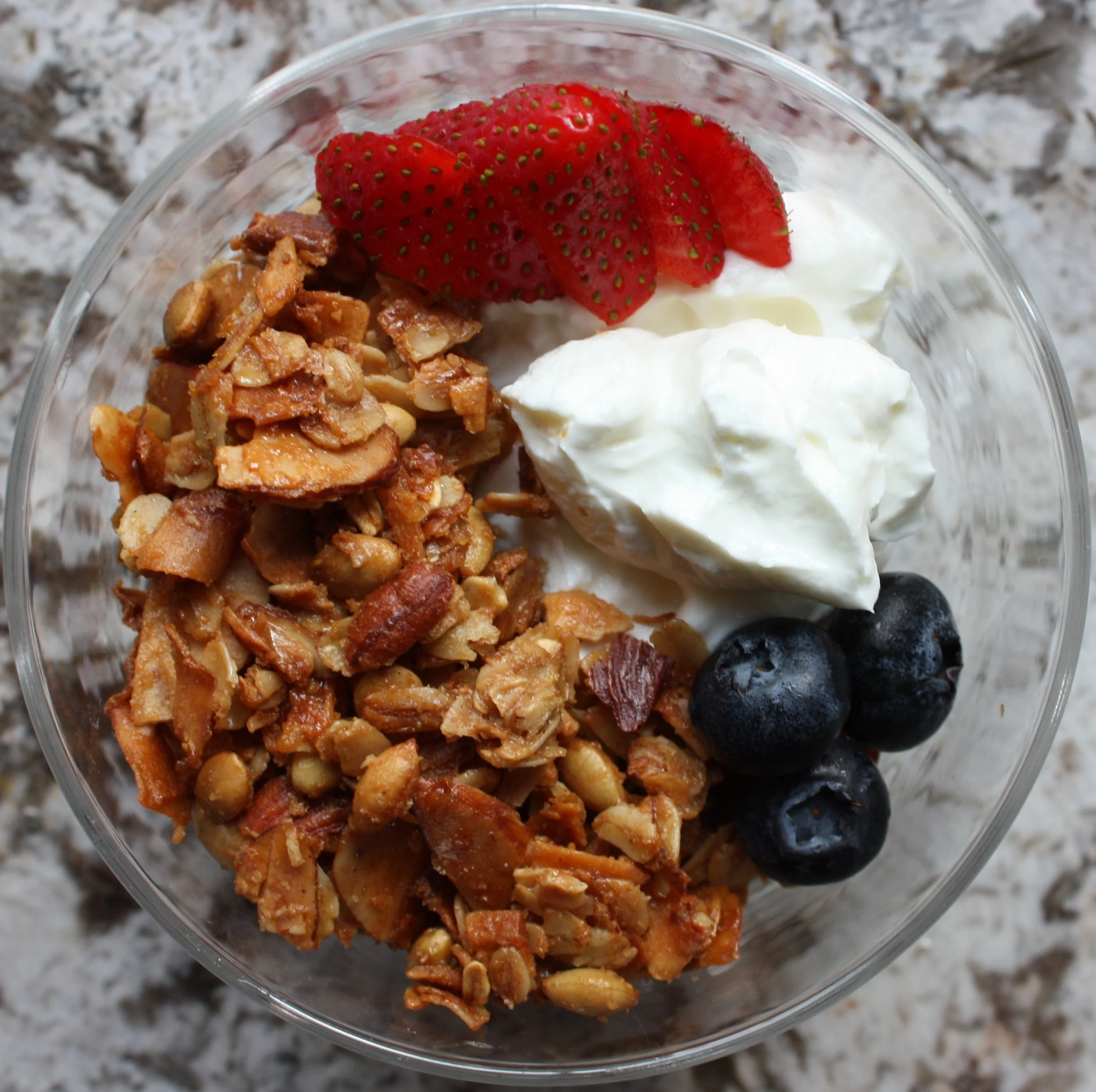 This crunchy and sweet granola is unexpectedly addicting. Maple syrup caramelizes within all of the seeds, nuts, and oats, allowing this granola to beautifully top a bowl of greek yogurt. It’s so good that it can even be eaten by itself!